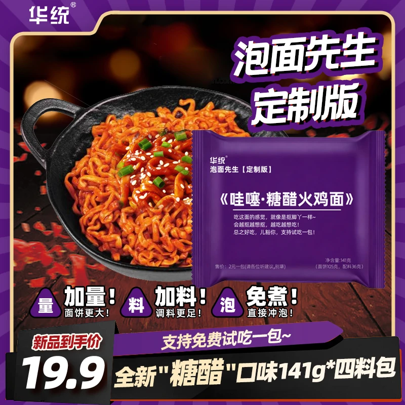 【新品哇噻糖醋火鸡面】泡面先生定制141g方便面酸辣泡面夜宵速食NO.2昨日销量25万-50万